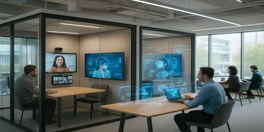 The corporate office landscape has fundamentally shifted. With 84% of organizations adopting permanent hybrid work models, traditional conference rooms designed