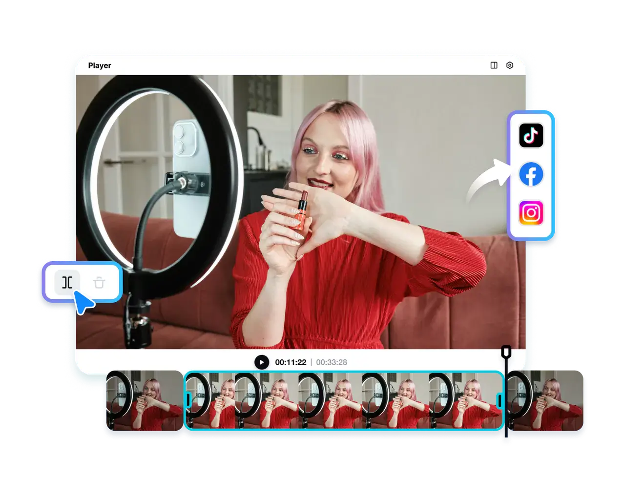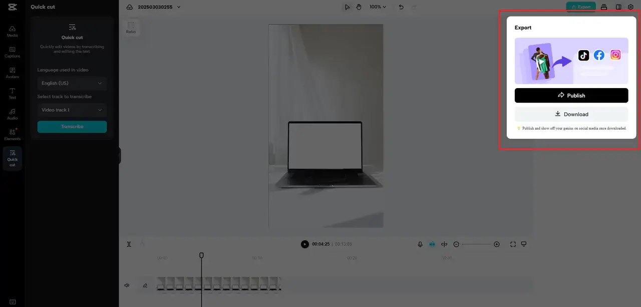 Adjust export settings to maintain high quality and hit Publish to share it on social media directly. Once you’ve fine-tuned the settings, you can also download the split video segments without any drop in clarity.