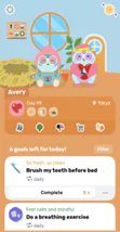 Finch gamifies self-care, an important aspect of mental well-being, by giving you a pet who depends on you for care and nurturing. So, by taking care of your digital pet, you will be taking care of yourself. The app gives you self-care goals daily, like drinking a glass of water, or performing guided breathing. As you complete each task, you get points and rewards that help your pet grow.